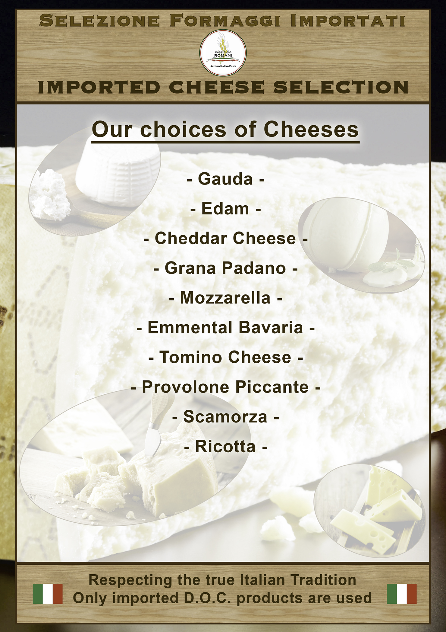 Daily fresh production from our production right to your table Authentically made with pure Italian ingredients Pastificio Romani Home Products Manufacture Contact us IMPORTED CHEESE SELECTION Feel free to ask for a quote at any timeWe will reply to you within 24 hours Fresh Pasta Dry Pasta Filled Pasta Cold Cuts Cold Cuts IMPORTED Back to Products